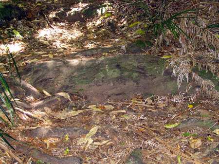 About an hour and a half in, there's a small glade with a substantial tree root for sitting on and snacking and some glorious punga.
